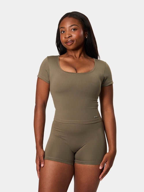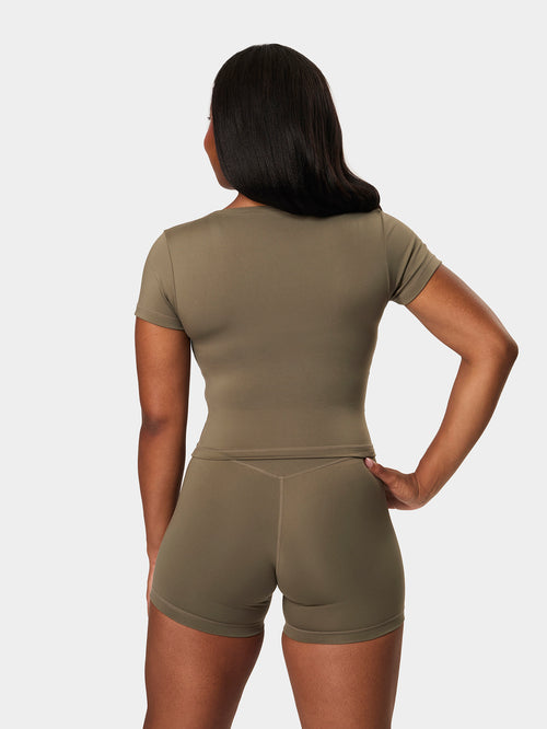 Designed to move with you—blending style, support, and the soft feel of our Essentials fabric. From the T-Strap Tank to everyday favorites, each piece empowers you to look and feel your best.