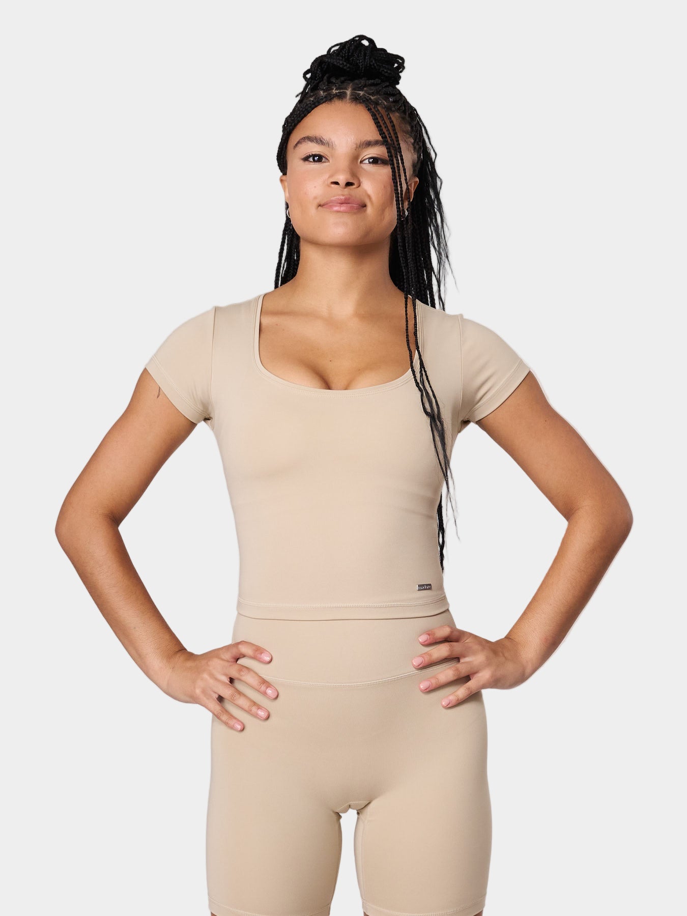 Model in Sand wears a Size XS.