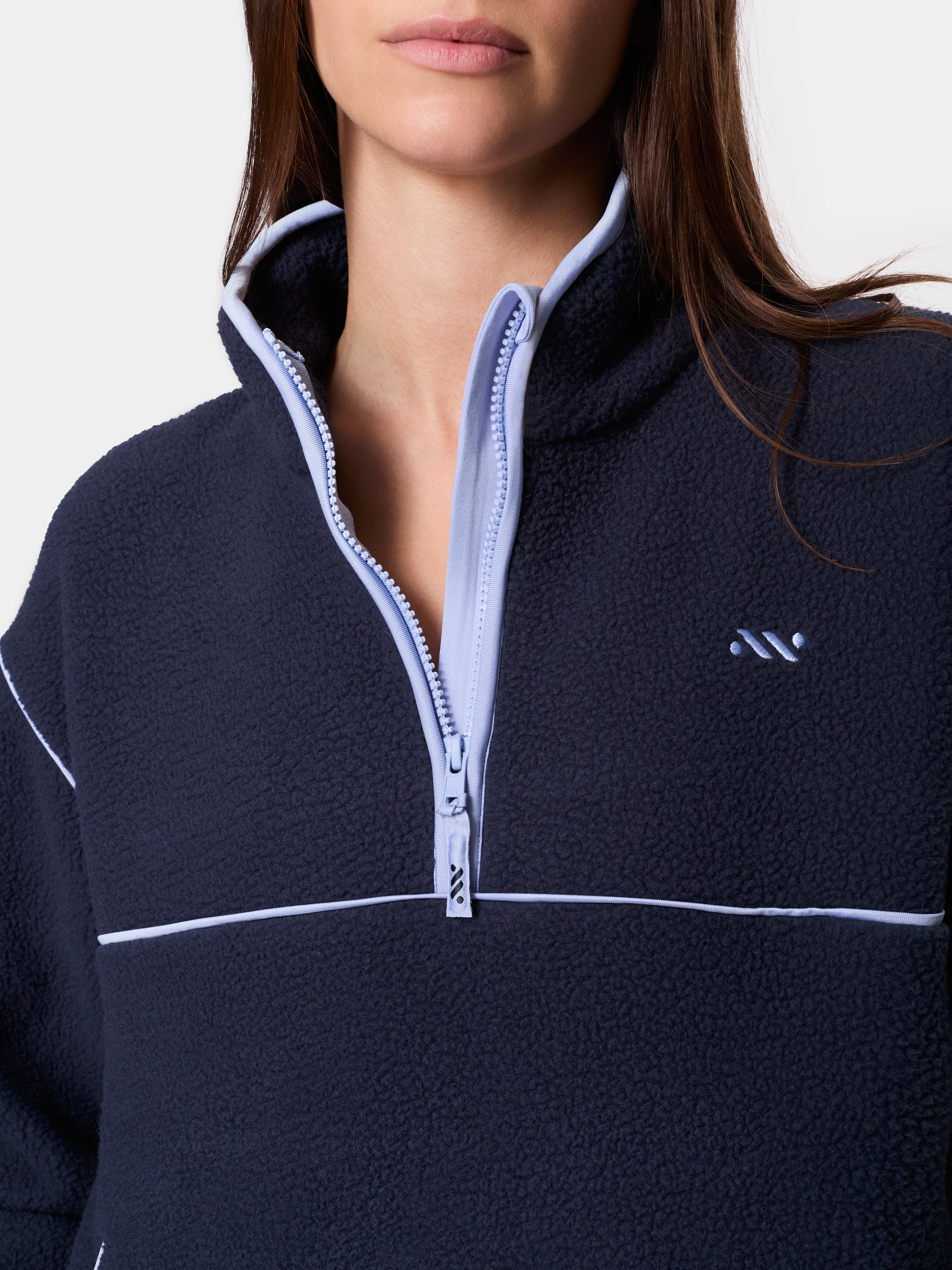 The Quarter Zip Fleece is your cozy, everyday essential. It features a classic quarter-zip neckline, contrast binding, and an embroidered logo for a clean, timeless look. Two front pockets add warmth and convenience, while interior drawstrings let you cinch the hem for a customizable, cropped fit. Soft, comfortable, and easy to wear wherever the day takes you.