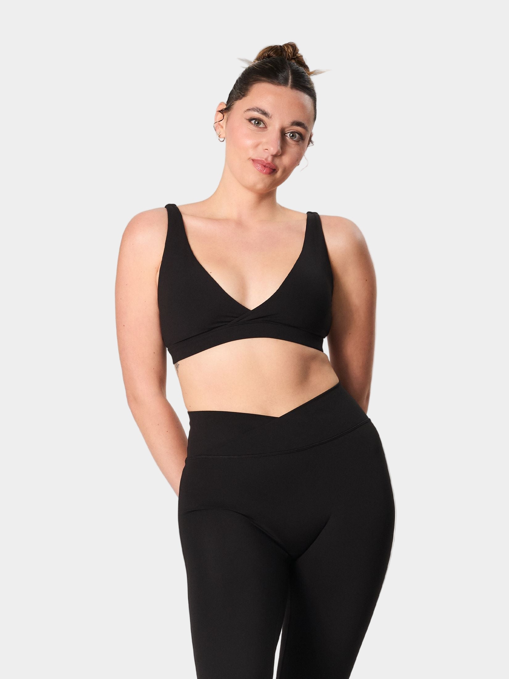 Sleek, supportive, and effortlessly flattering. The Essential Wrap Bra features a soft V-neckline, a crossover front detail that mirrors our Wrap Leggings and Shorts, and a scooped back for a feminine finish.